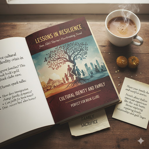 I can create an image that evokes the themes of Akhil Sharma’s novel and the discussion points for book clubs. It will aim to capture the essence of cultural identity, family dynamics, and the immigrant experience.